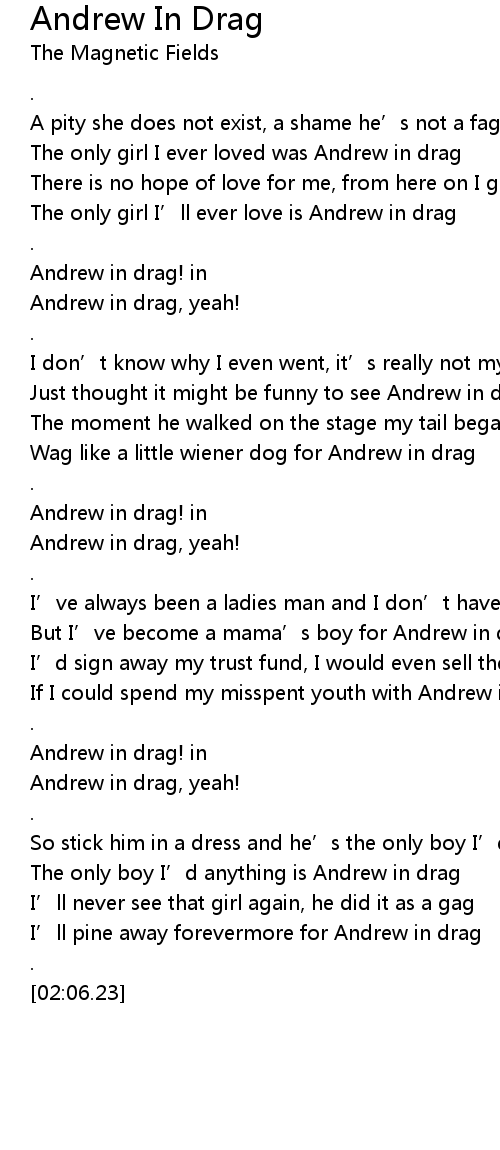 | [02:02.11] | I' ll pine away forevermore for Andrew in drag |