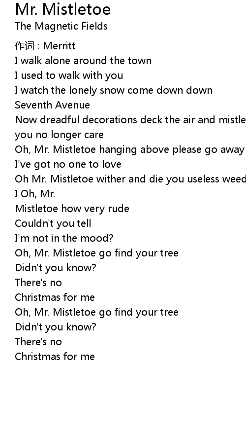 | Oh, Mr. Mistletoe go find your tree | |