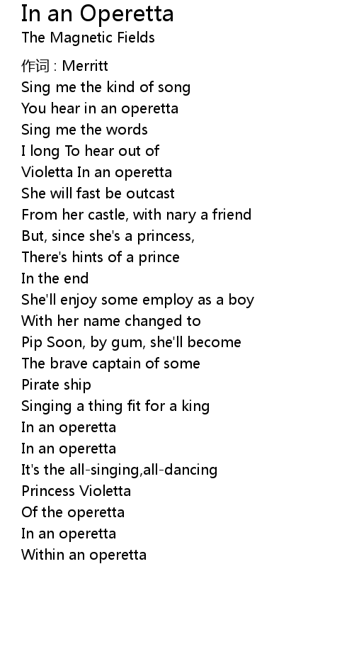 | Song | In an Operetta |
