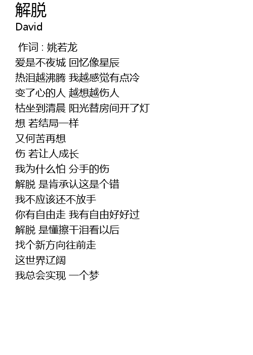 | [00:00.000] | 作词 : 姚若龙 |