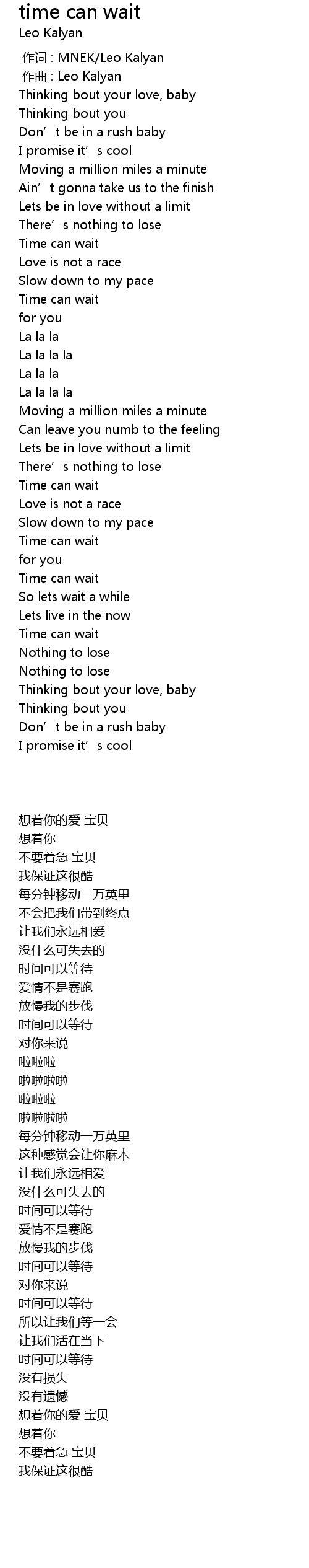 | [00:00.000] | zuò cí : MNEK Leo Kalyan |