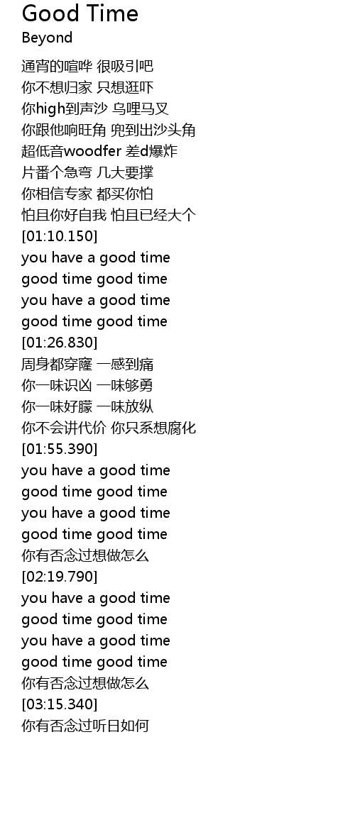 | [03:02.310] | good time good time |