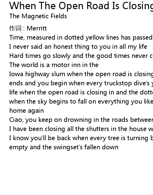 | Song | When The Open Road Is Closing In |