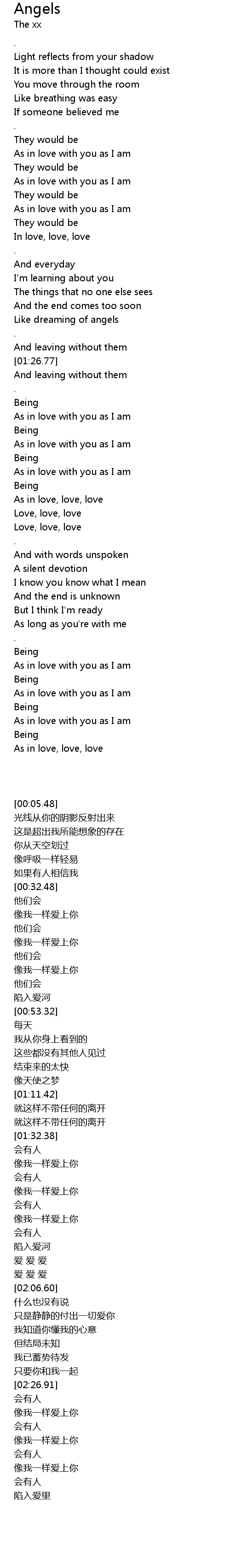 | [01:09.00] | Like dreaming of angels |