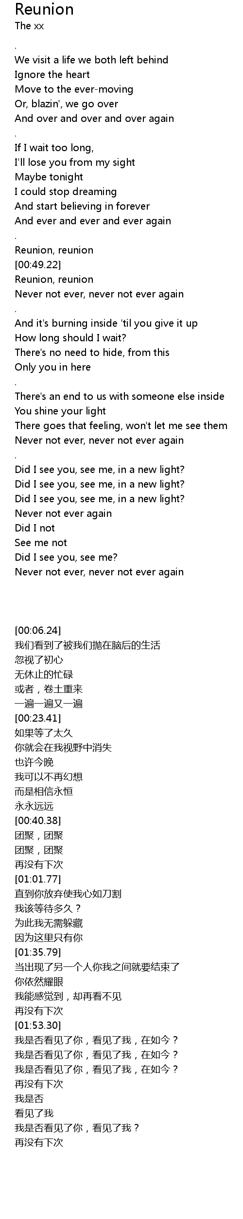 | [02:34.44] | Did I see you, see me, in a new light? |