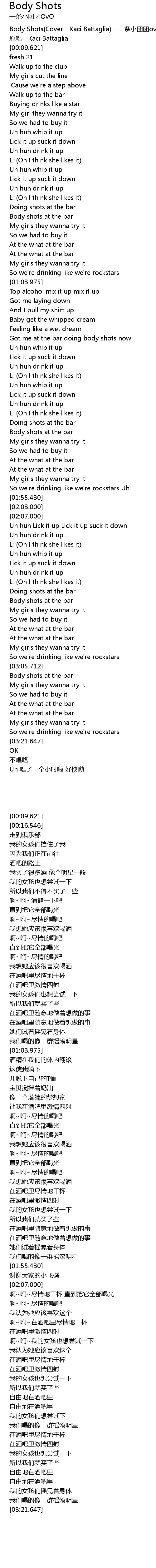 | [00:02.510] | Body Shots Cover: Kaci Battaglia yi tiao xiao tuan tuan ovo |