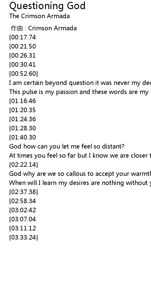 | Song | Questioning God |