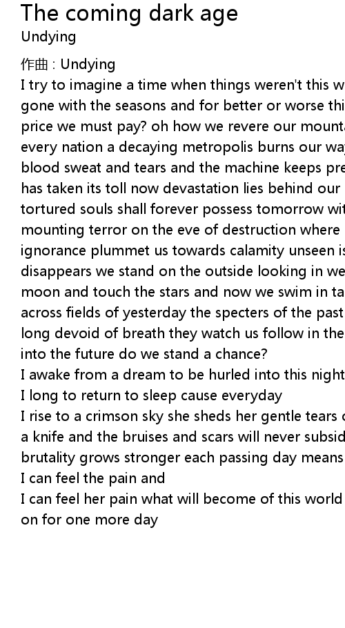 | Song | The coming dark age |