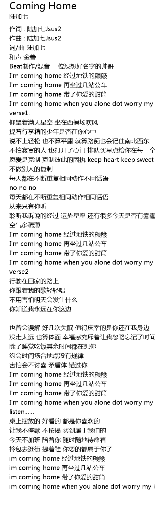 | I' m coming home jīng guò dì tiě de diān bǒ | |
