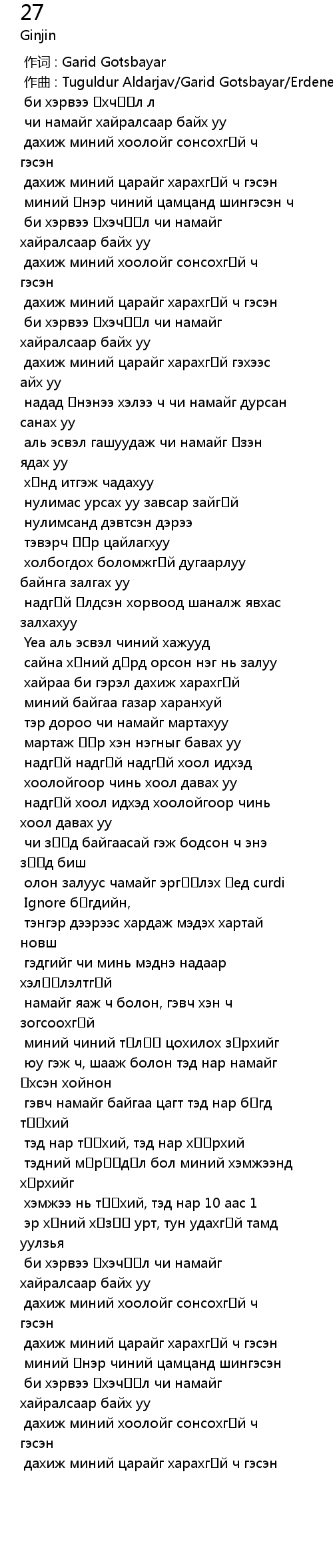 作词 : Garid Gotsbayar |