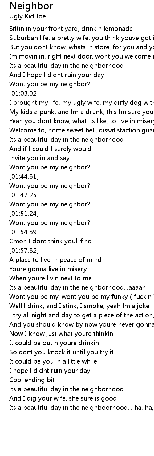 | [01:42.18] | Wont you be my neighbor? |