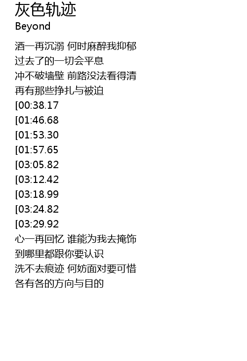 | [02:52.96][01:46.68][00:40.53] | 踏着灰色的轨迹 |