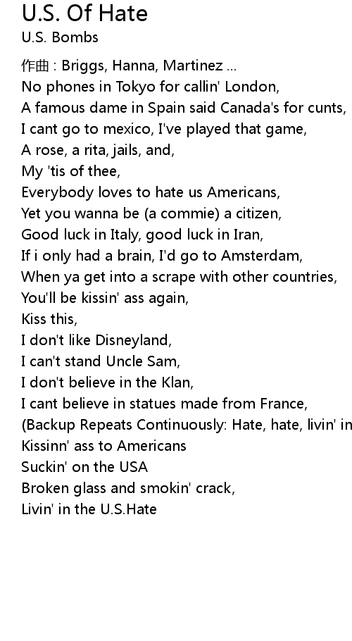 | Song | U.S. Of Hate |