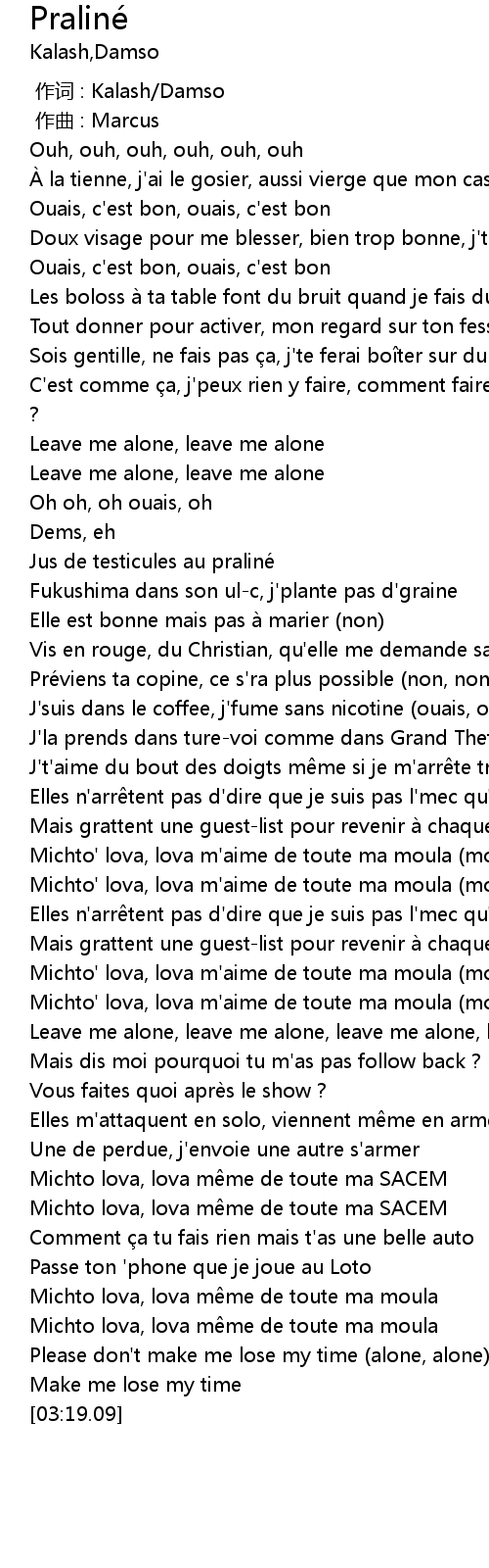 | [02:13.42] | Michto' lova, lova m'aime de toute ma moula (moula) |