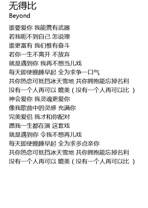 | [01:52.380] | méi yǒu yí ge rén zài kě yǐ pì měi méi yǒu yí ge rén zài kě yǐ bǐ |