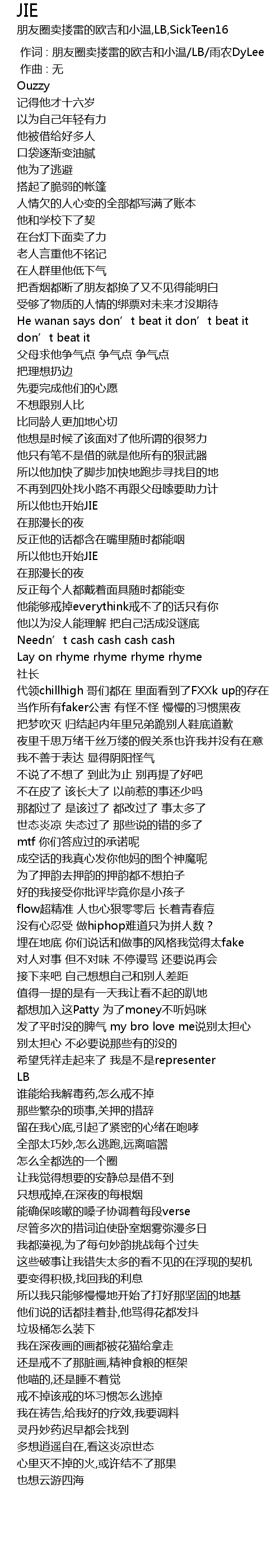 | [02:00.193] | 为了押韵去押韵的押韵都不想拍子 |