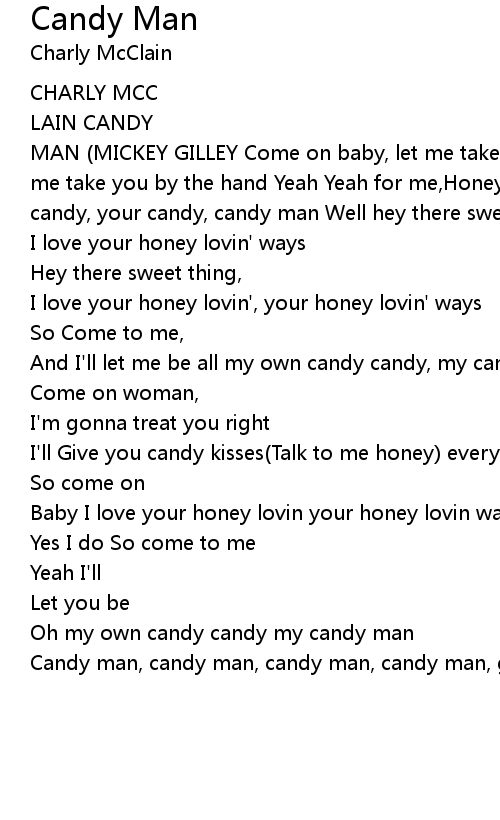 MAN (MICKEY GILLEY Come on baby, let me take you by the hand Come on sugar, let me take you by the hand Yeah Yeah for me,Honey let me be, all your own candy candy, your candy, candy man Well hey there sweet thing (Yeah) |
