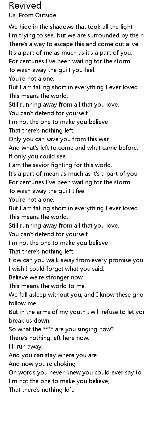 But in the arms of my youth I will refuse to let you break us down, break us down. |