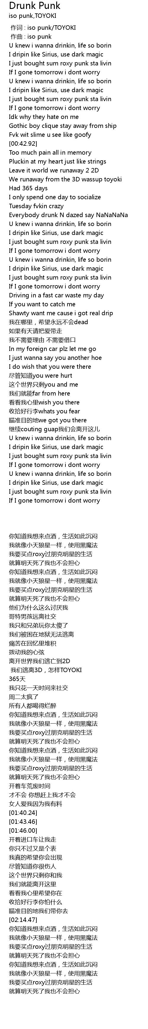 | [00:01.00] | zuò qǔ : iso punk |