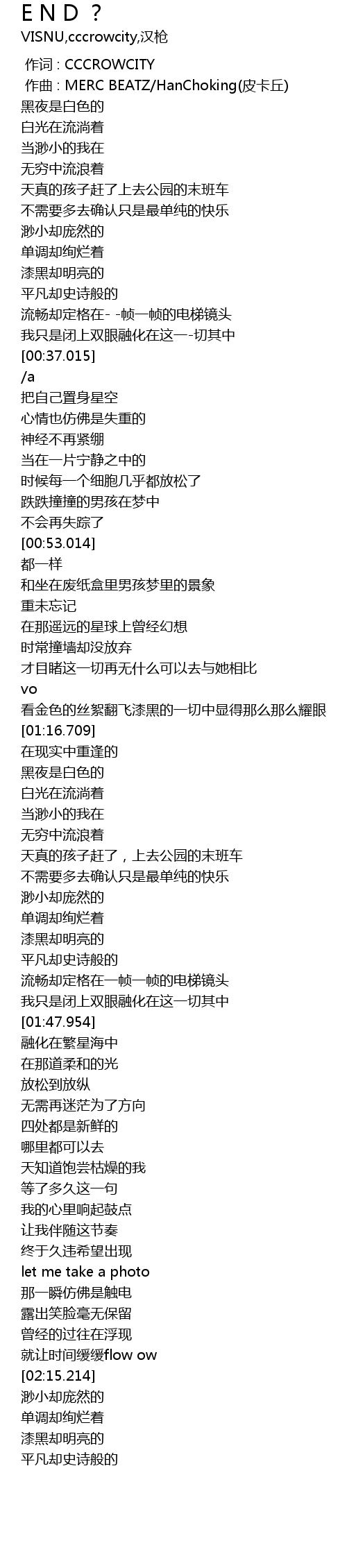 | [00:01.000] | 作曲 : MERC BEATZ/HanChoking(皮卡丘) |