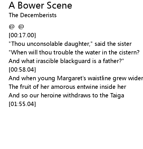 | [00:49.25] | And what irascible blackguard is a father?" |