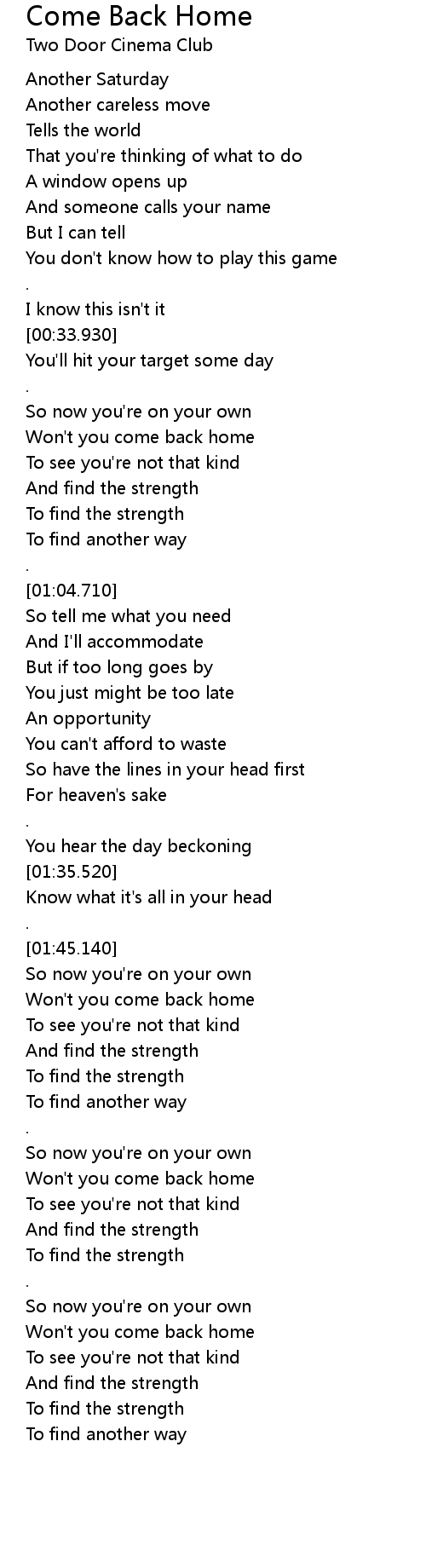 Won't you come back home |