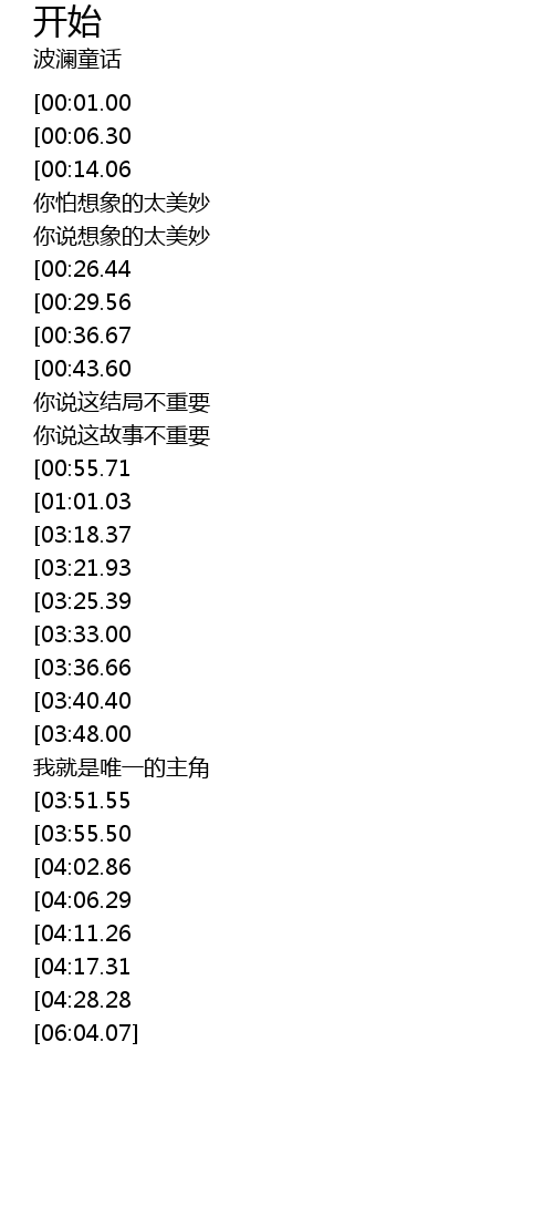 | [05:46.84][04:11.26][01:58.48] | 着继续那些情节终将揭晓 |