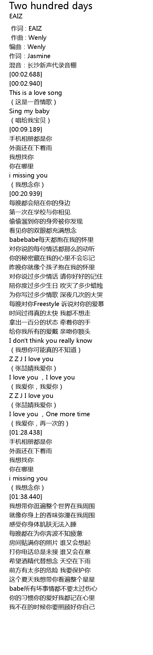 | [00:01.939] | 作词:Jasmine |