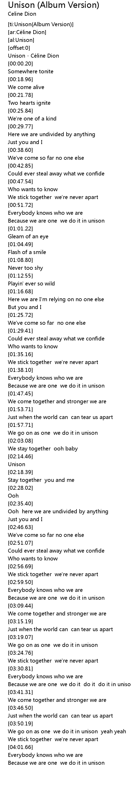 | [00:00.10] | Unison Cé line Dion |