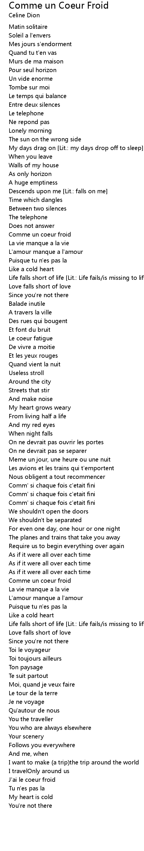 Comme un coeur froid |