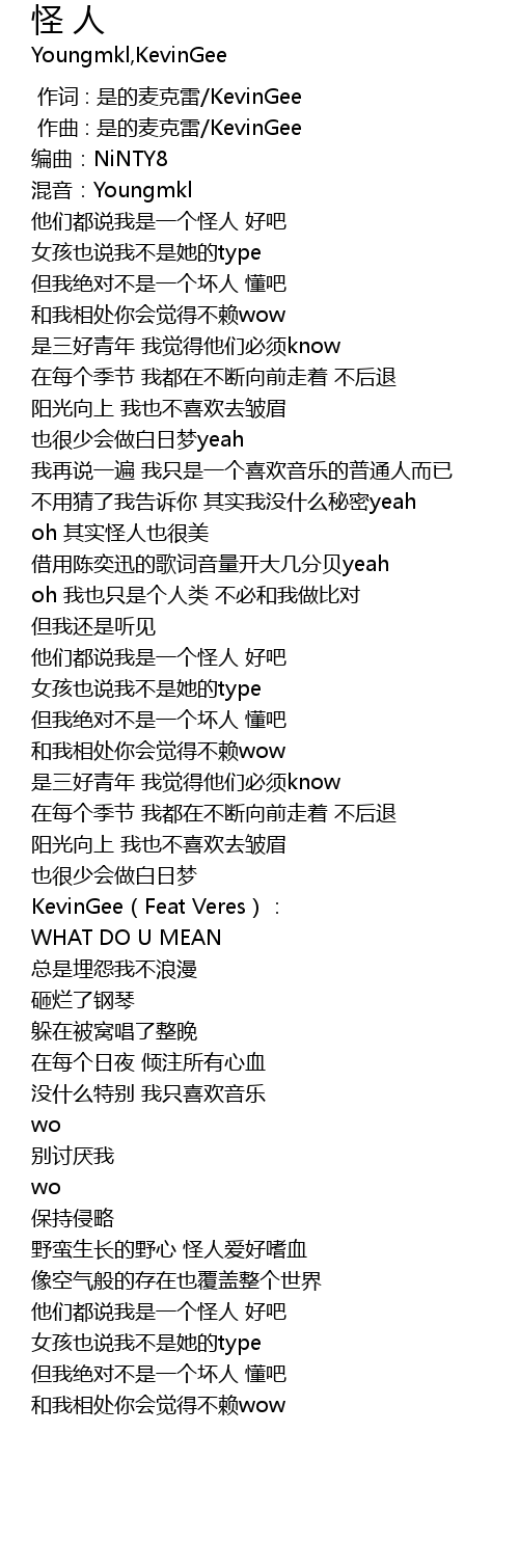 | [01:35.133] | ta men dou shuo wo shi yi ge guai ren hao ba |