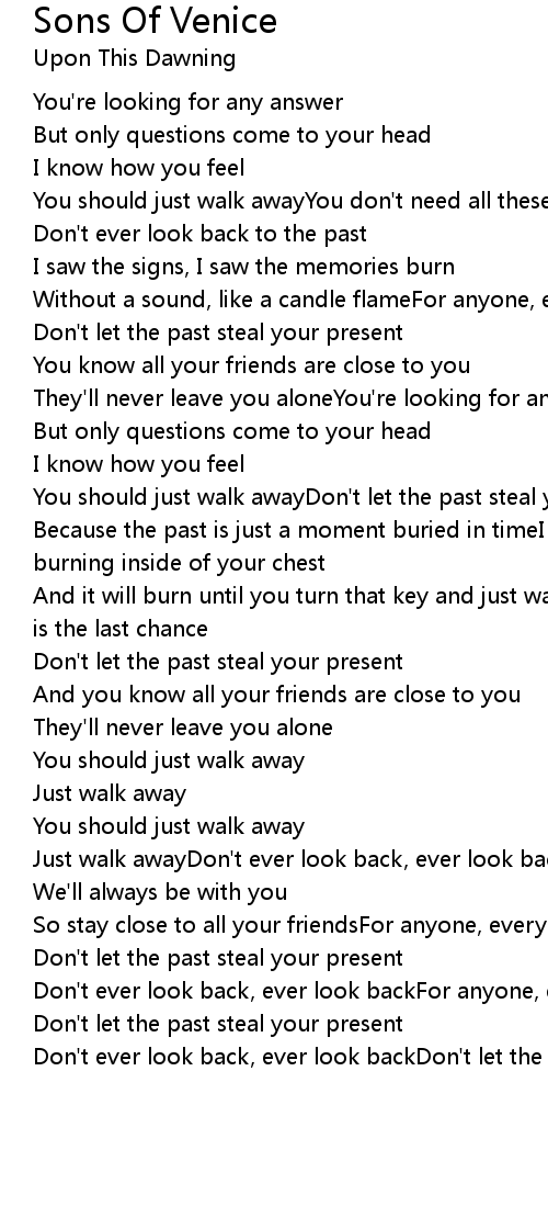 Don't ever look back, ever look backDon't let the past steal your life |