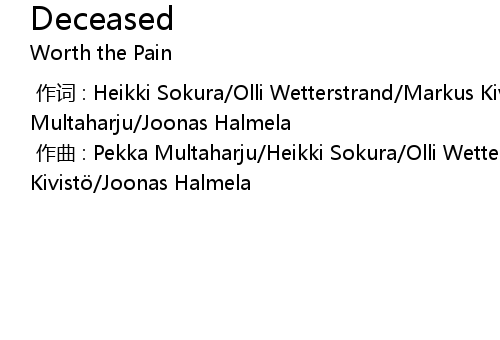 | [00:00.00-1] | zuo qu : Pekka Multaharju Heikki Sokura Olli Wetterstrand Markus Kivist Joonas Halmela |