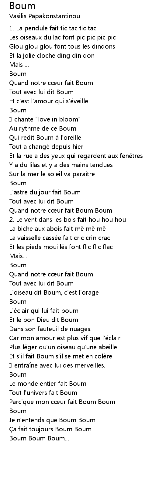 | [00:53.13] | Quand notre c ur fait Boum Boum |
