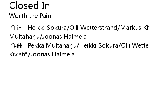 | [00:00.00-1] | 作词 : Heikki Sokura/Olli Wetterstrand/Markus Kivistö/Pekka Multaharju/Joonas Halmela |
