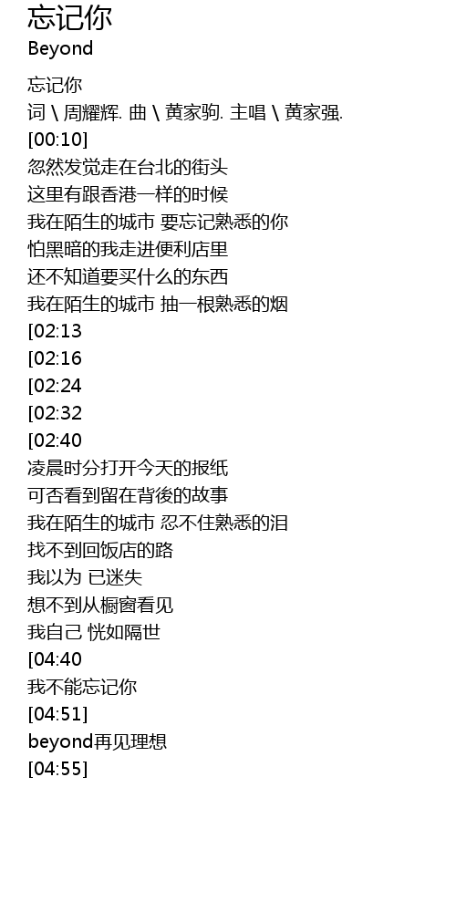 | [04:48] | 我不能忘记你 |