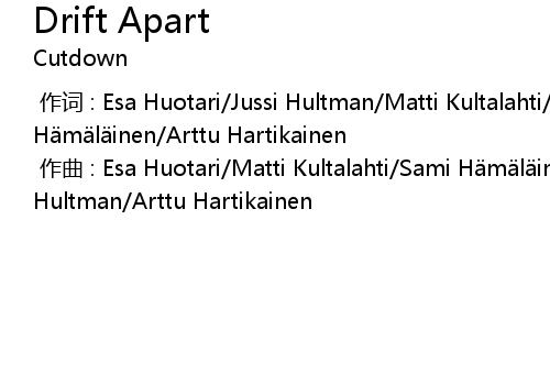 [00:00.00-1] 作词 : Esa Huotari/Jussi Hultman/Matti Kultalahti/Sami Hämäläinen/Arttu Hartikainen