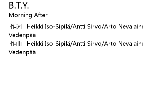 | [00:00.00-1] | 作曲 : Heikki Iso-Sipilä/Antti Sirvo/Arto Nevalainen/Antti Vedenpää |