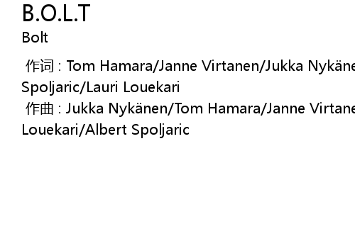 | [00:00.00-1] | 作词 : Tom Hamara/Janne Virtanen/Jukka Nykänen/Albert Spoljaric/Lauri Louekari |