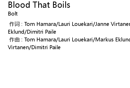 | [00:00.00-1] | zuò qǔ : Tom Hamara Lauri Louekari Markus Eklund Janne Virtanen Dimitri Paile |