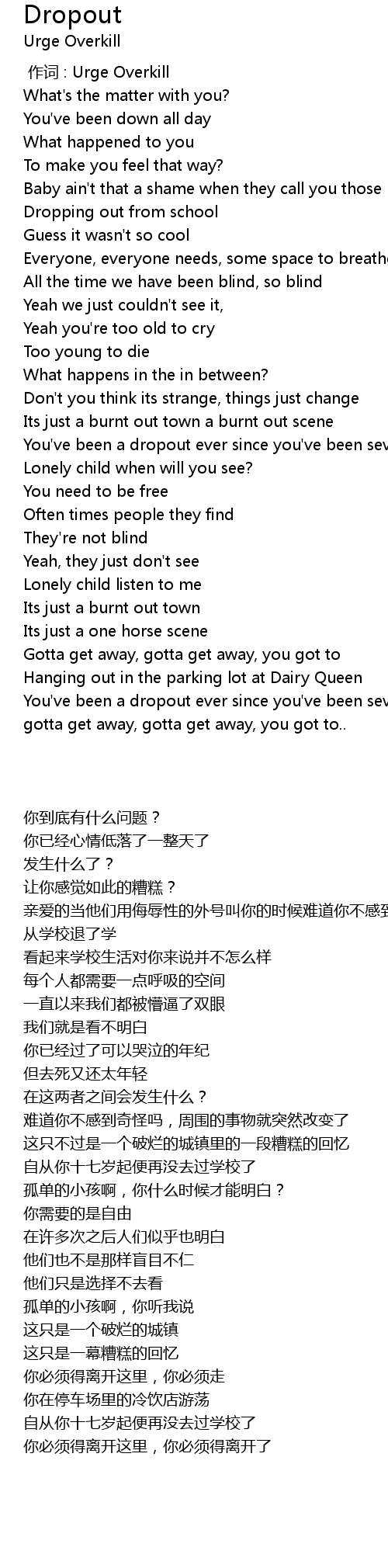 | [02:13.97] | You' ve been a dropout ever since you' ve been seventeen |