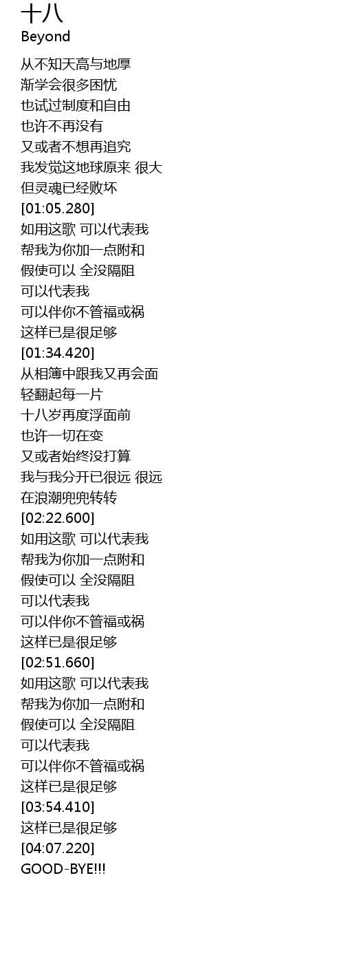 | [01:55.140] | 十八岁再度浮面前 |