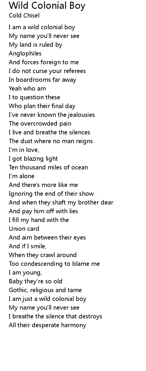 I am just a wild colonial boy |