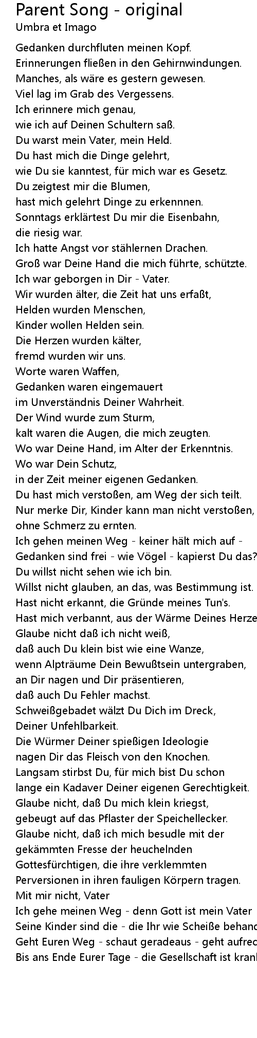 | Du warst mein Vater, mein Held. | |