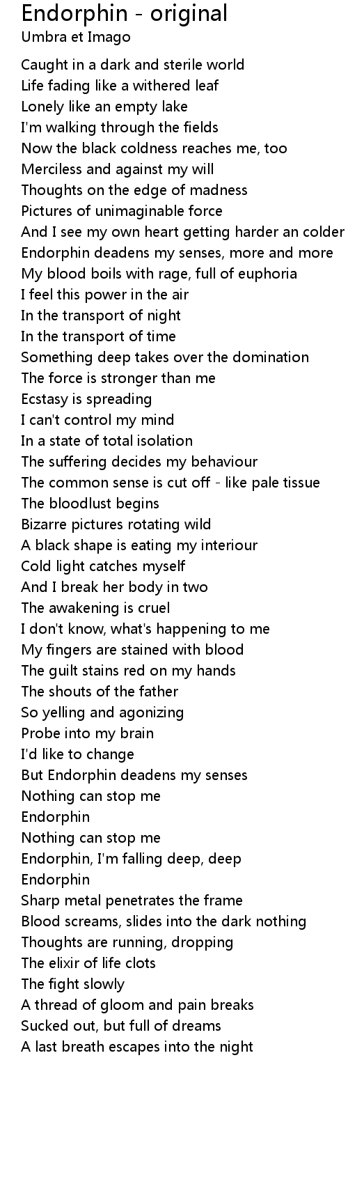 Endorphin deadens my senses, more and more |