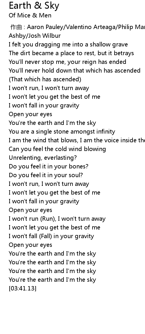 | [03:21.99] | You' re the earth and I' m the sky |