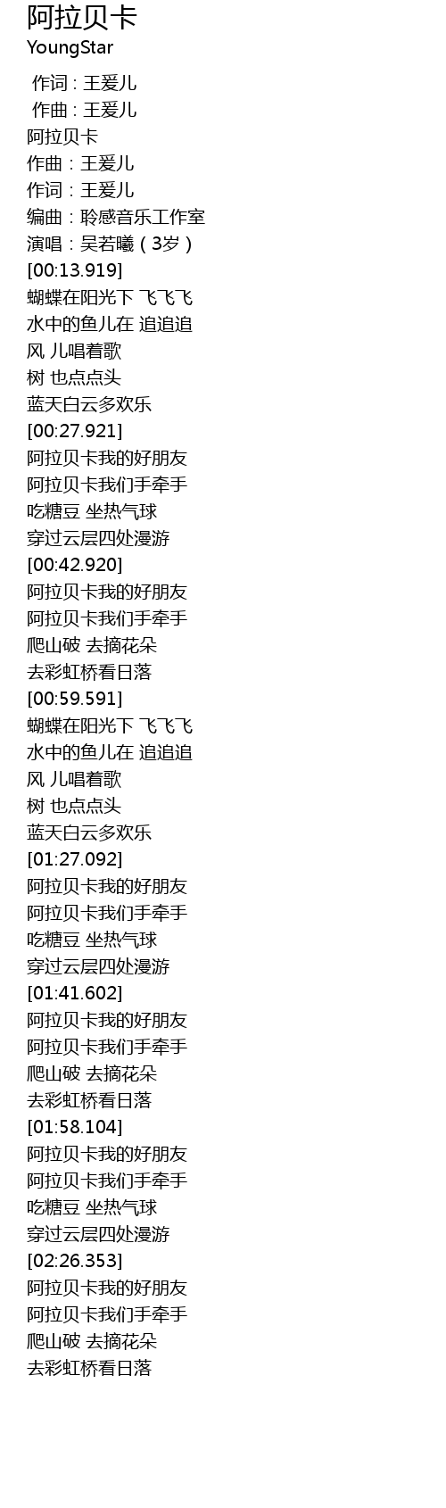 | [00:12.419] | 演唱:吴若曦(3岁) |