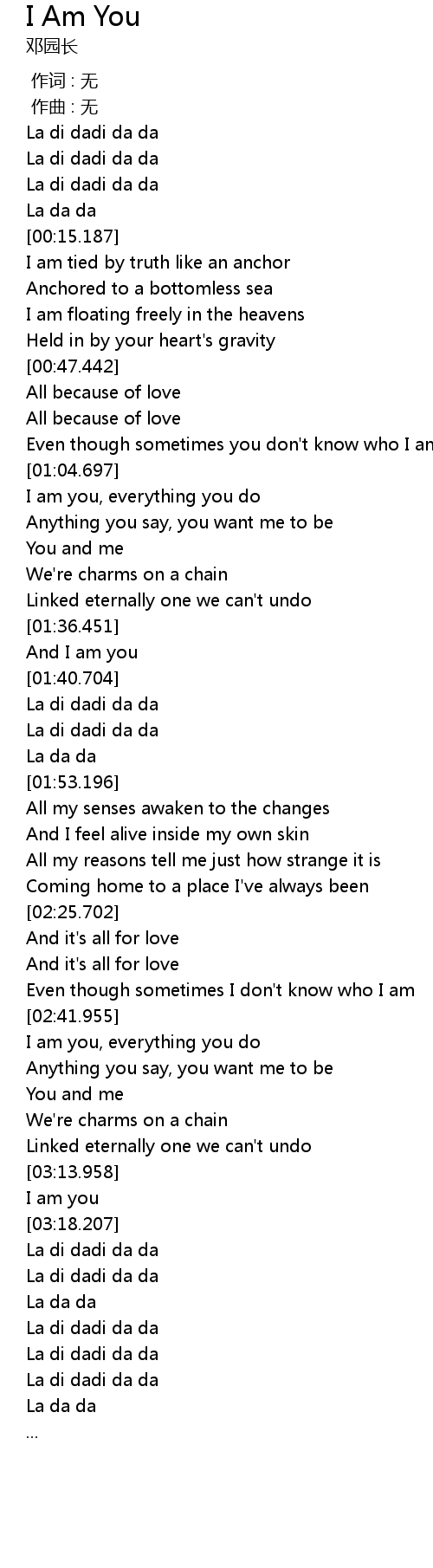 | [00:57.696] | Even though sometimes you don' t know who I am |