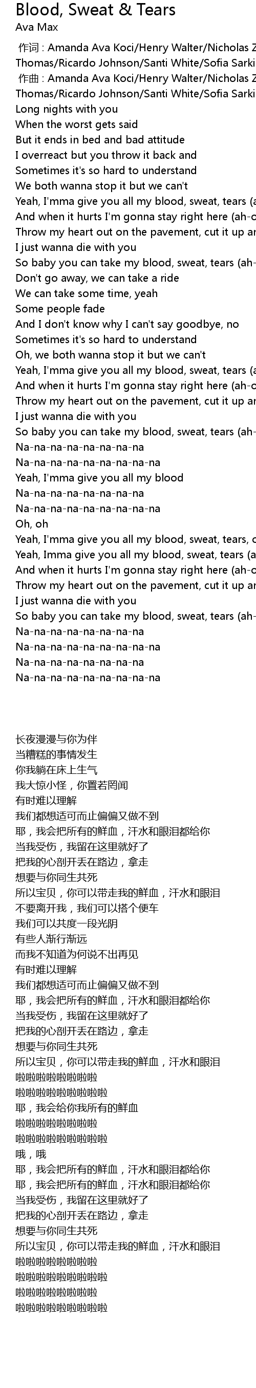 | [00:33.06] | Yeah, I'mma give you all my blood, sweat, tears (ah-ooh!) |