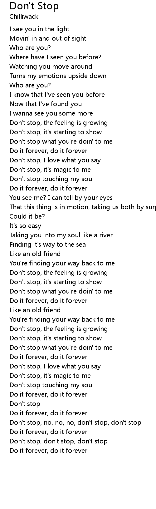 Don't stop, no, no, no, don't stop, don't stop |